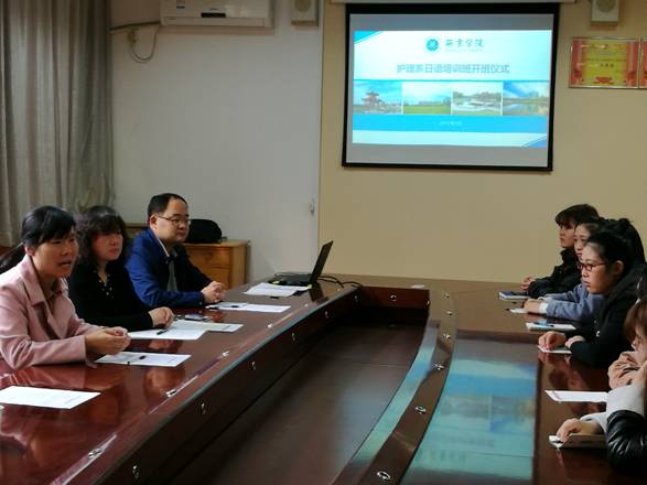 3月18日上午,护理系在6号办公楼204会议室举行日语培训班开班仪式,开班仪式由护理系教务科科长韩朝老师主持,西京学院校长助理兼护理系主任王晋荣、陕西外经贸集团国际协力部经理王晓韵、教务二处竞赛实践科科长梁庆军、陕外经贸实业集团外派中心资深高级讲师周建忠、允能书院辅导员常晓娟老师和参加日语培训的22名学生参加了开班仪式。