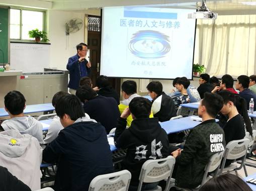4月13日下午14:10, 西安市航天总医院人事部部长兼科教科主任邓岳老师来我校做“医者的人文与修养”专场报告会,报告会在1429教室顺利进行,大学生发展中心安排护理、建工等专业的学生认真聆听了此次报告。